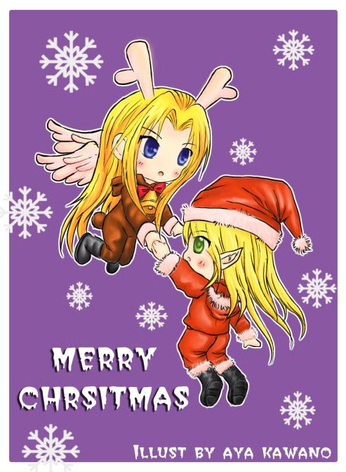 這次畫的是安因和賽塔,聖誕老人和麋鹿(迷路?)天使