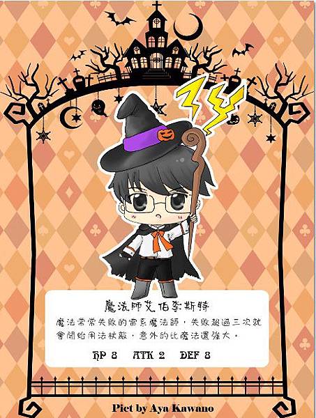覺得艾伯最適合的裝扮就是魔法師啦~~而且一定是雷屬性的!(畫完之後我家的艾伯就開始自暴自棄了,32骰7是在做甚麼啊)