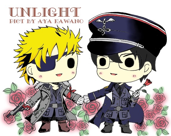 一邊畫一邊想,這兩個人裏頭的軍服還是一樣嘛。還連顏色都差不多,只是狗狗沒領帶而已。
