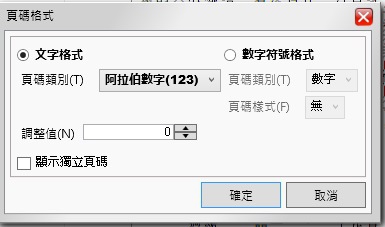 頁碼可以選擇想要的文字格式,可以用羅馬數字或是編排像是001、0001這樣的頁碼